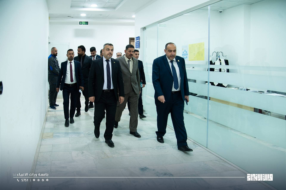 The President of the University of Warith Al-Anbiyaa, Professor Dr Ibrahim Saeed Al-Hayyawi, conducted a field visit to the University and the College of Medicine. He was accompanied by the Academic Assistant, Professor Waqed Al-Moussawi.