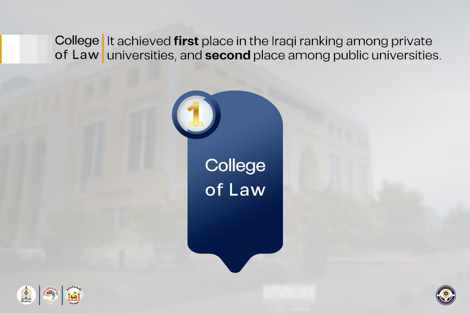 The College of Law at Warith Al-Anbiyaa University (peace be upon him) achieved a distinguished academic accomplishment by ranking first among private universities and second among public universities in the Iraqi Ranking of Academic Departments, reflecting the college’s high academic performance and advanced standing within Iraq’s higher education sector.