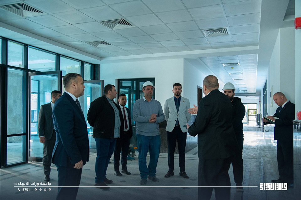The President of Warith Al-Anbiyaa University, Professor Dr Ibrahim Saeed Al-Hayyawi, accompanied by the Assistant President for Academic Affairs, Professor Dr Waqed Al-Moussawi, conducted a field visit across the University campus to review the progress of the educational process and the academic environment experienced by students. During the visit, he listened to students’ observations and identified their needs.