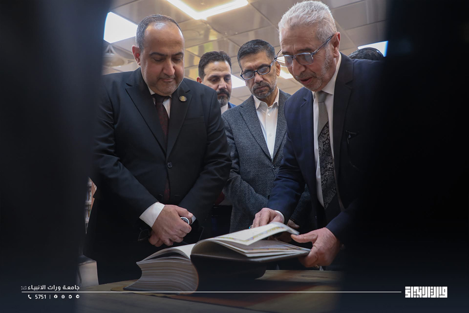 University of Warith Al-Anbiyaa celebrated the receipt of a handwritten copy of the Holy Qur’an, to which its students, faculty members, and staff contributed. The official ceremony was held at the University’s Central Library and was attended by the University President, Professor Dr. Ibrahim Saeed Al-Hayyawi, along with several college deans.