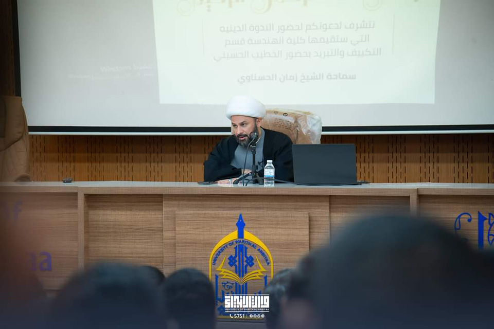 The Dean of the College of Engineering at the University of Warith Al-Anbiyaa (PBUH) hosted the esteemed orator, Sheikh Zaman Al-Hasnawi (may his success continue), in a notable gathering attended by the university's students.