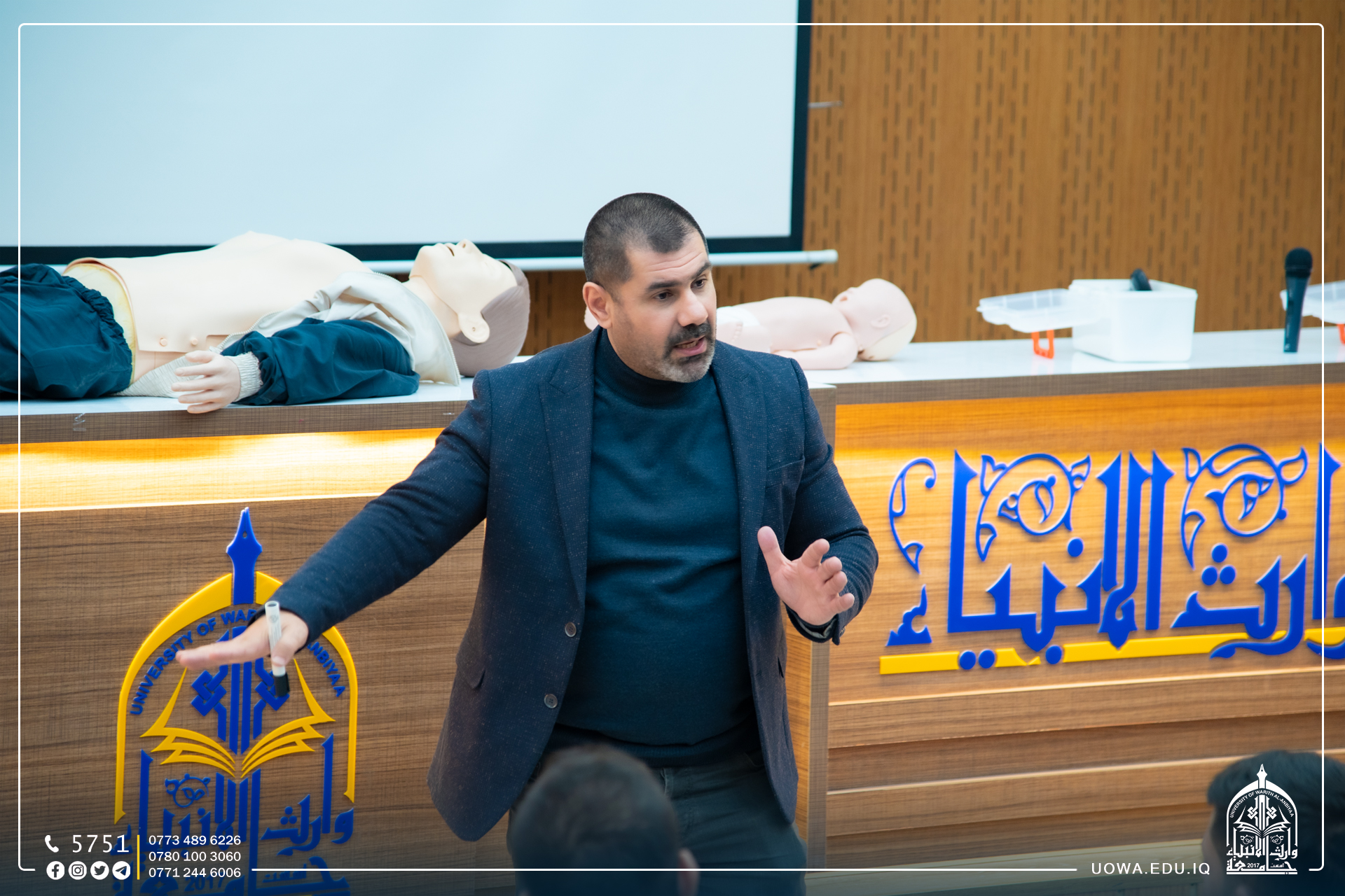 The College of Medicine at Warith Al-Anbiyaa University (peace be upon him), in collaboration with the "Regional Center for Emergency Medicine," held a training workshop on the fundamentals of life-saving for seniors and children. This workshop was presented to first-year students by emergency medicine specialists.